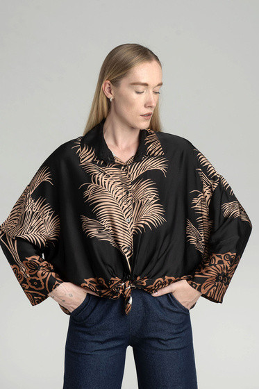 Czarna wizytowa bluzka oversize z kwiatowym printem