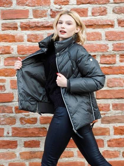Khaki kurtka puchowa z wysoką stójką Dankoff.dk