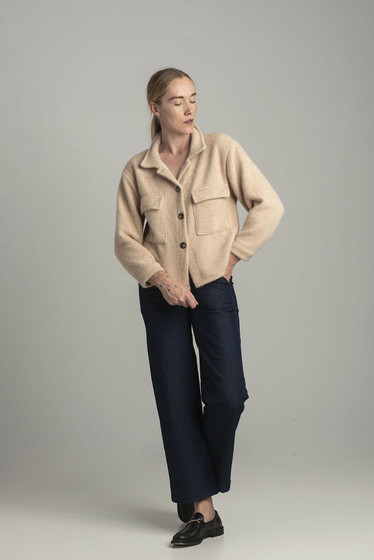 Beżowa krótka dzianinowa kurtka