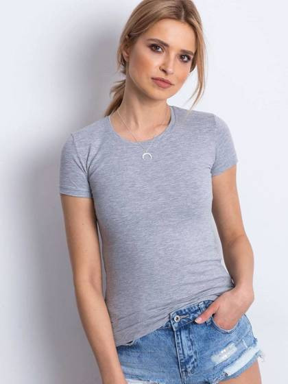 Bluzka basic krótki rękaw okrągły dekolt jasnoszara