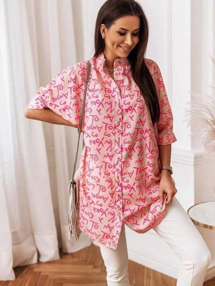 Różowa koszula w białe kwiaty oversize LeMonada