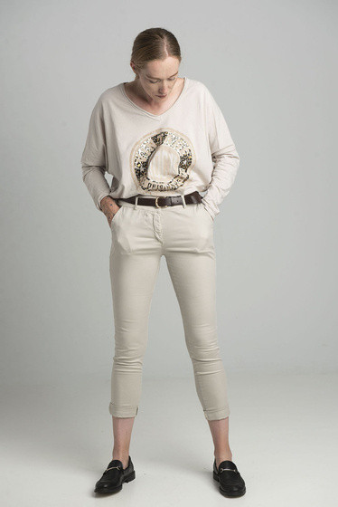 Beżowe spodnie eleganckie z guzikami Och Bella