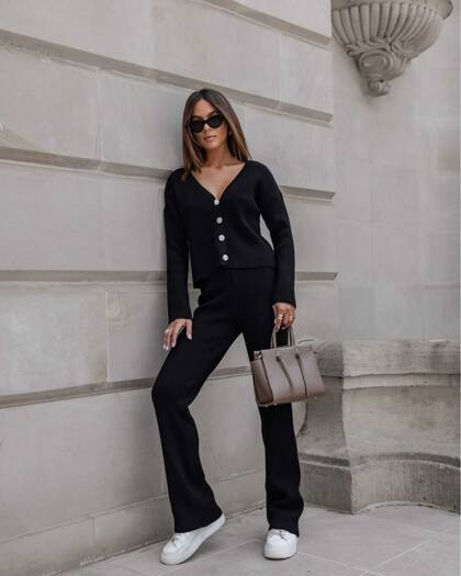 Czarne spodnie zdobione złotymi guzikami Coomore