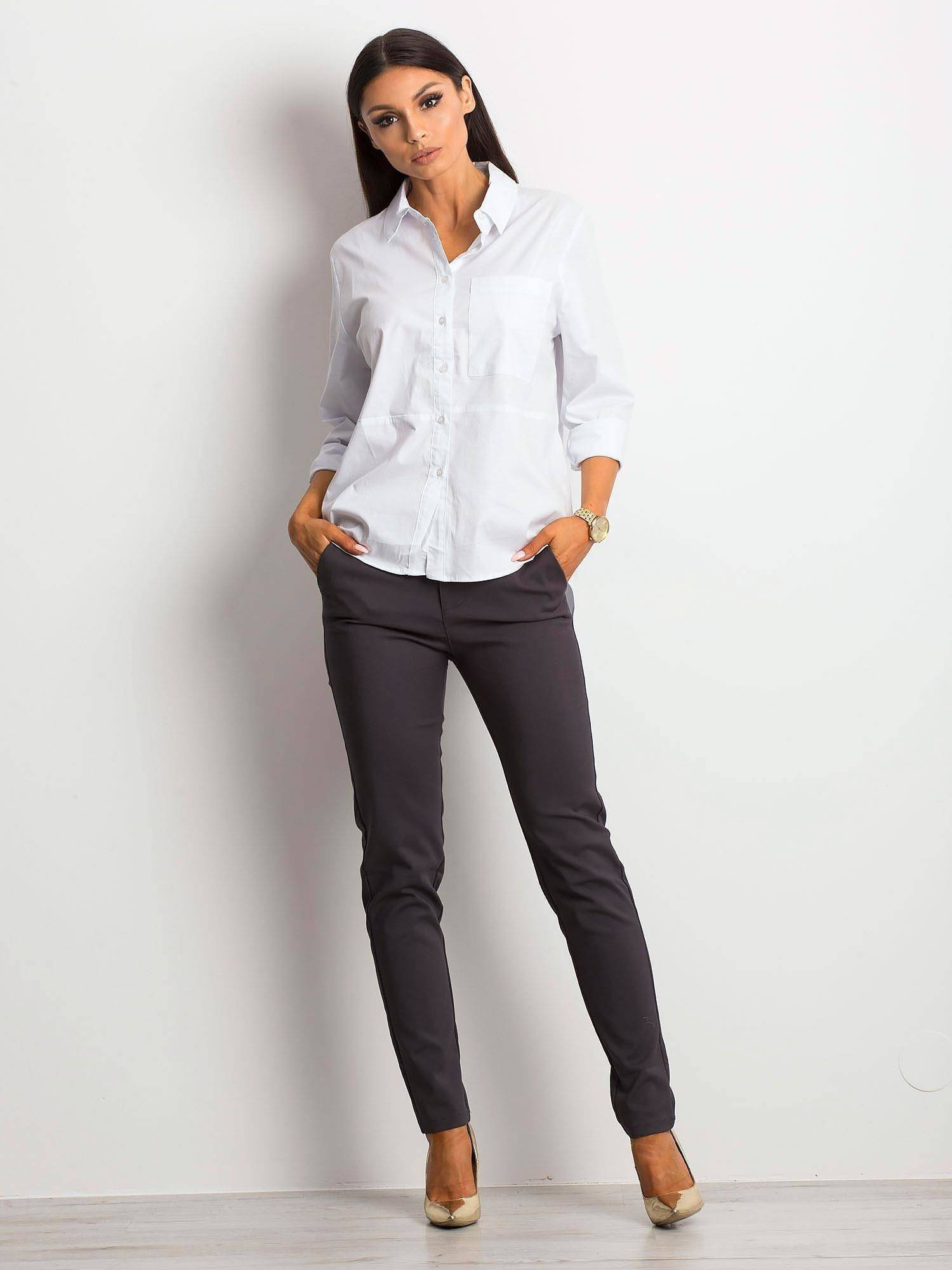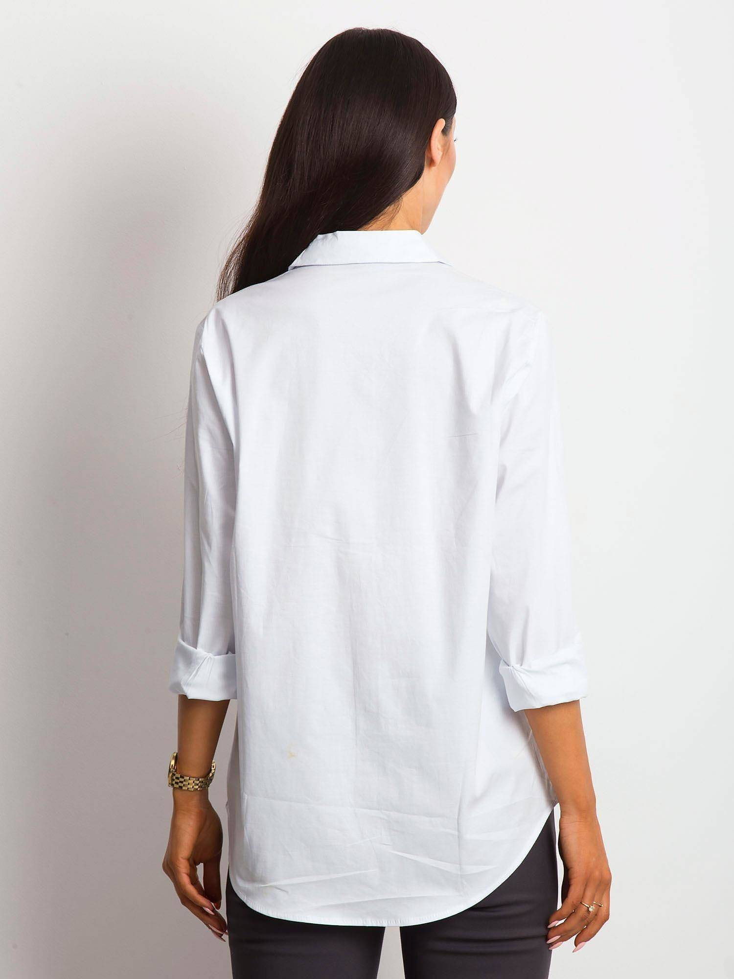 Klasyczna w kroju koszula o szerszym kroju typu oversize. Model posiada odcięcie na wysokości talii oraz zapięcie na guziki. Długie rękawy zakończone mankietami. Tył przedłużony.