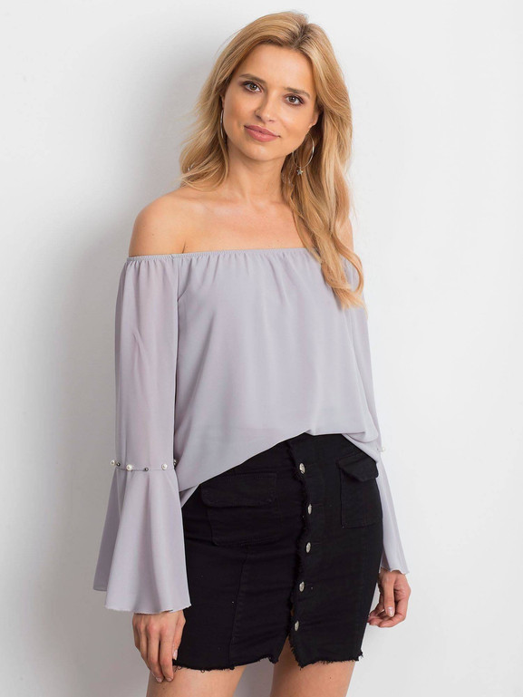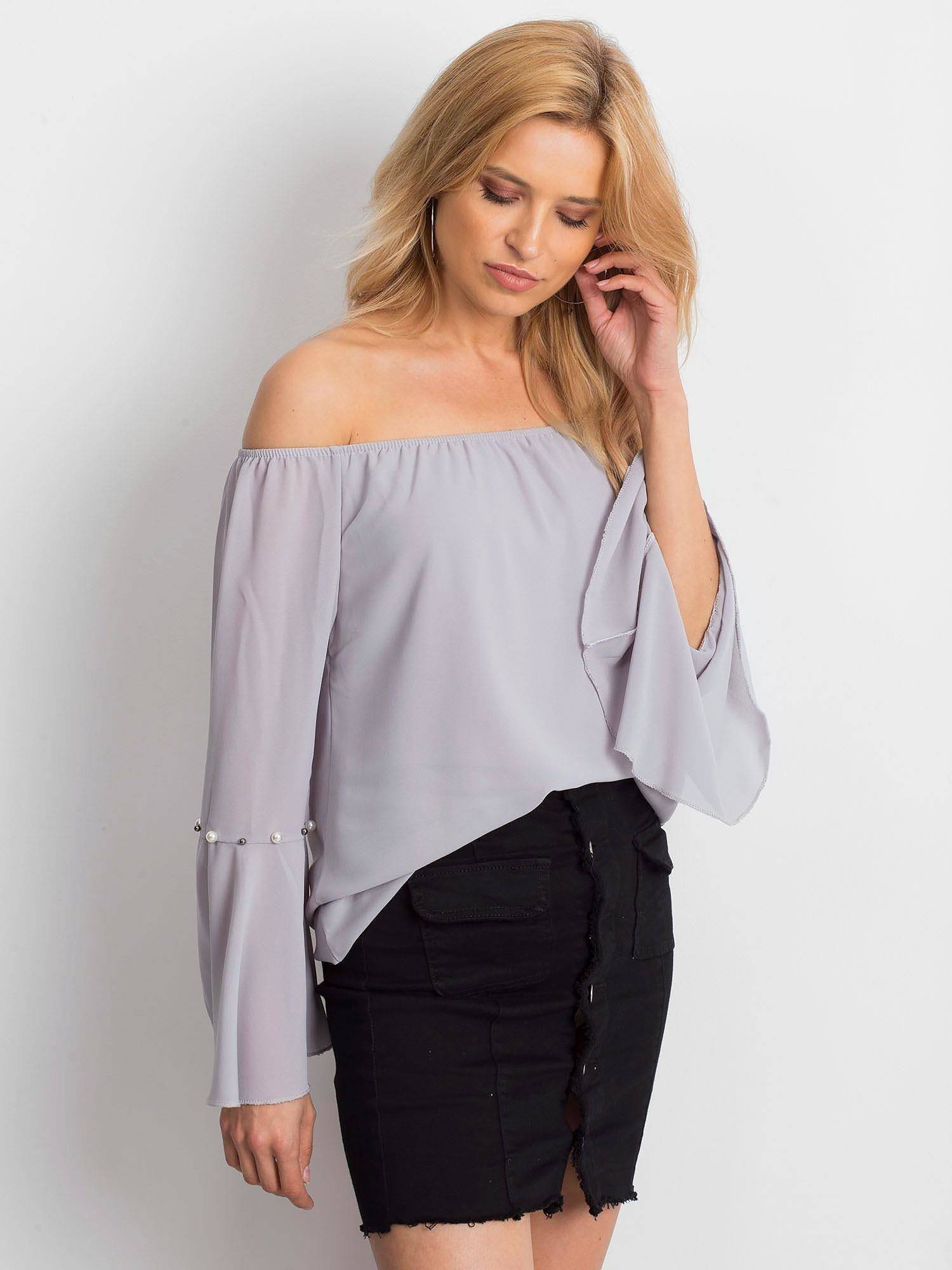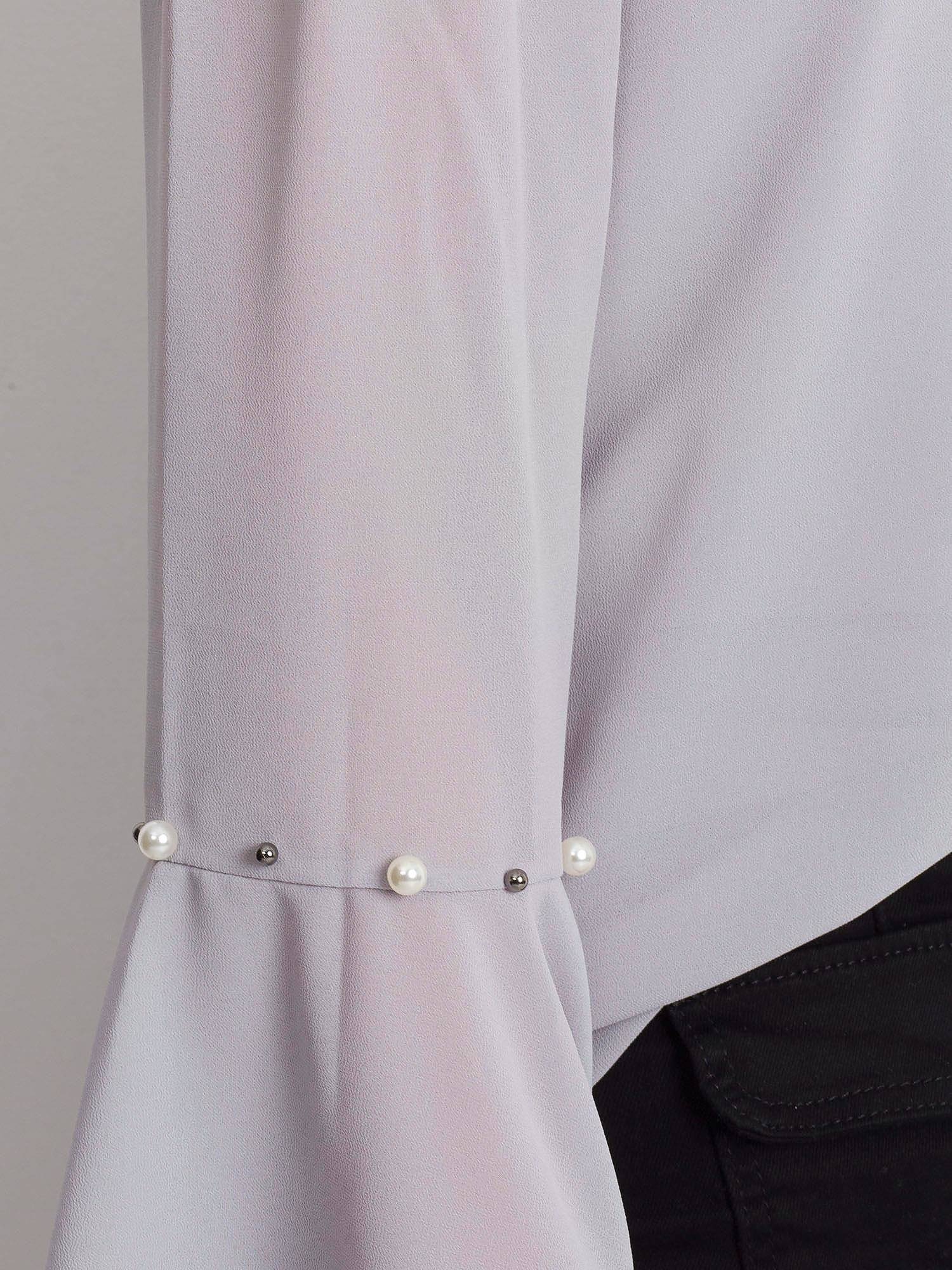 Bluzka tiulowa zdobiona perełkami przy rękawach szara