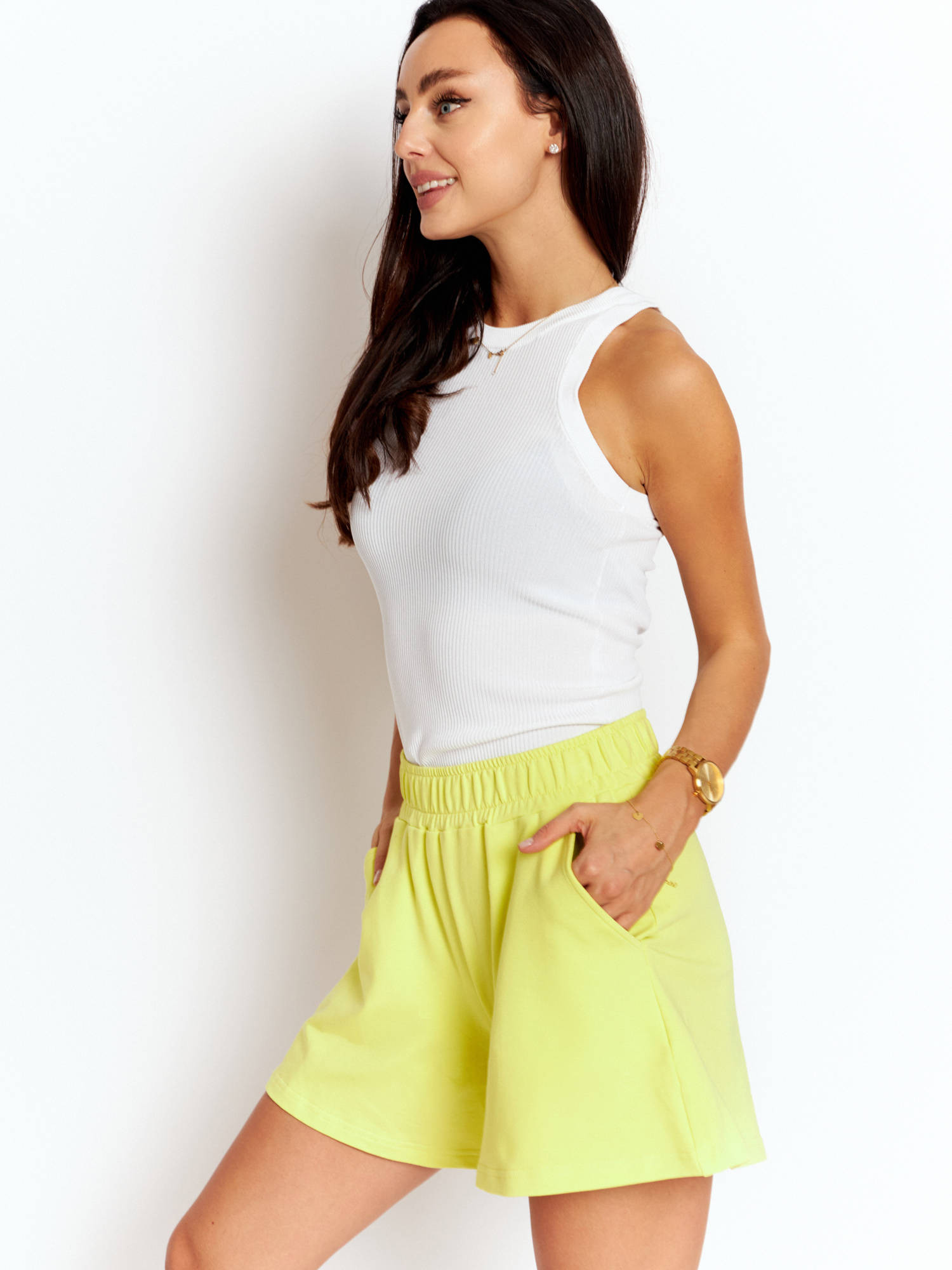 Wykonane z wysokiej jakości tkaniny luźne szorty z kolekcji Cocomore. Model z wsuwanymi kieszeniami po bokach.