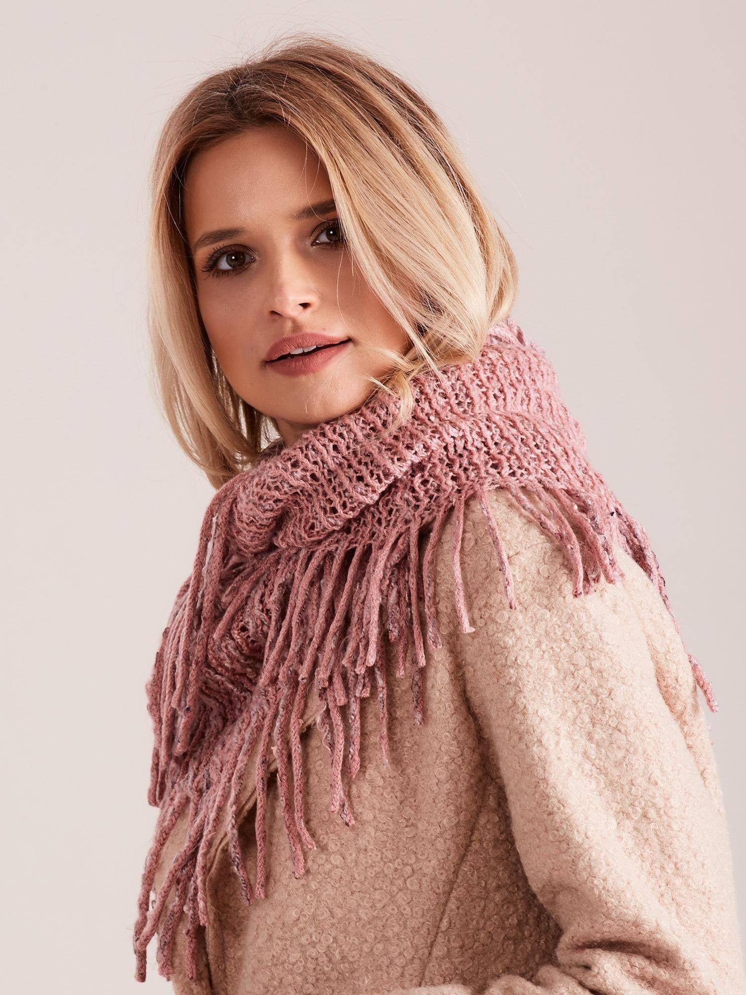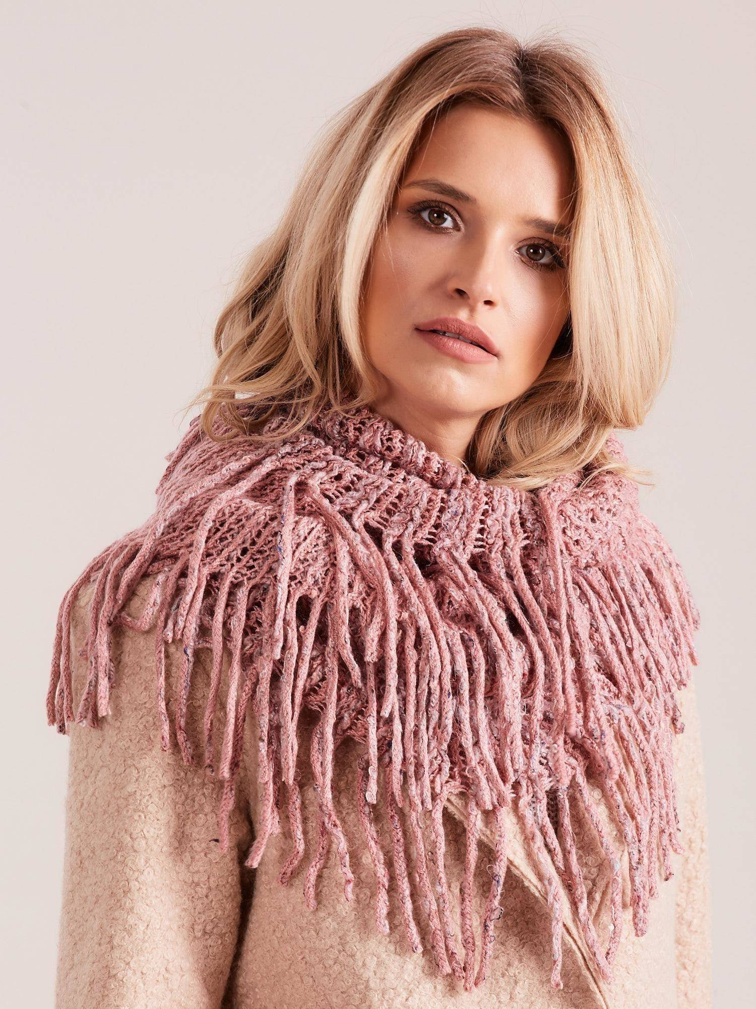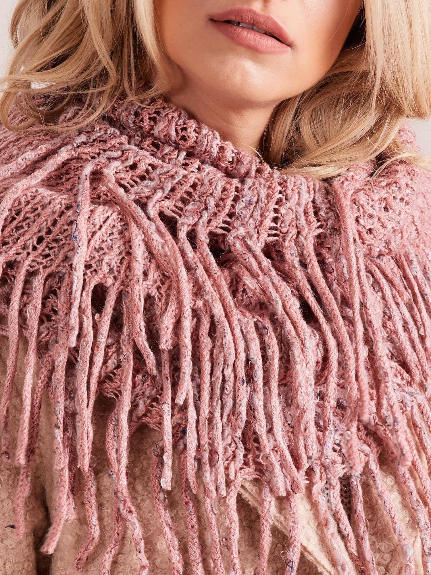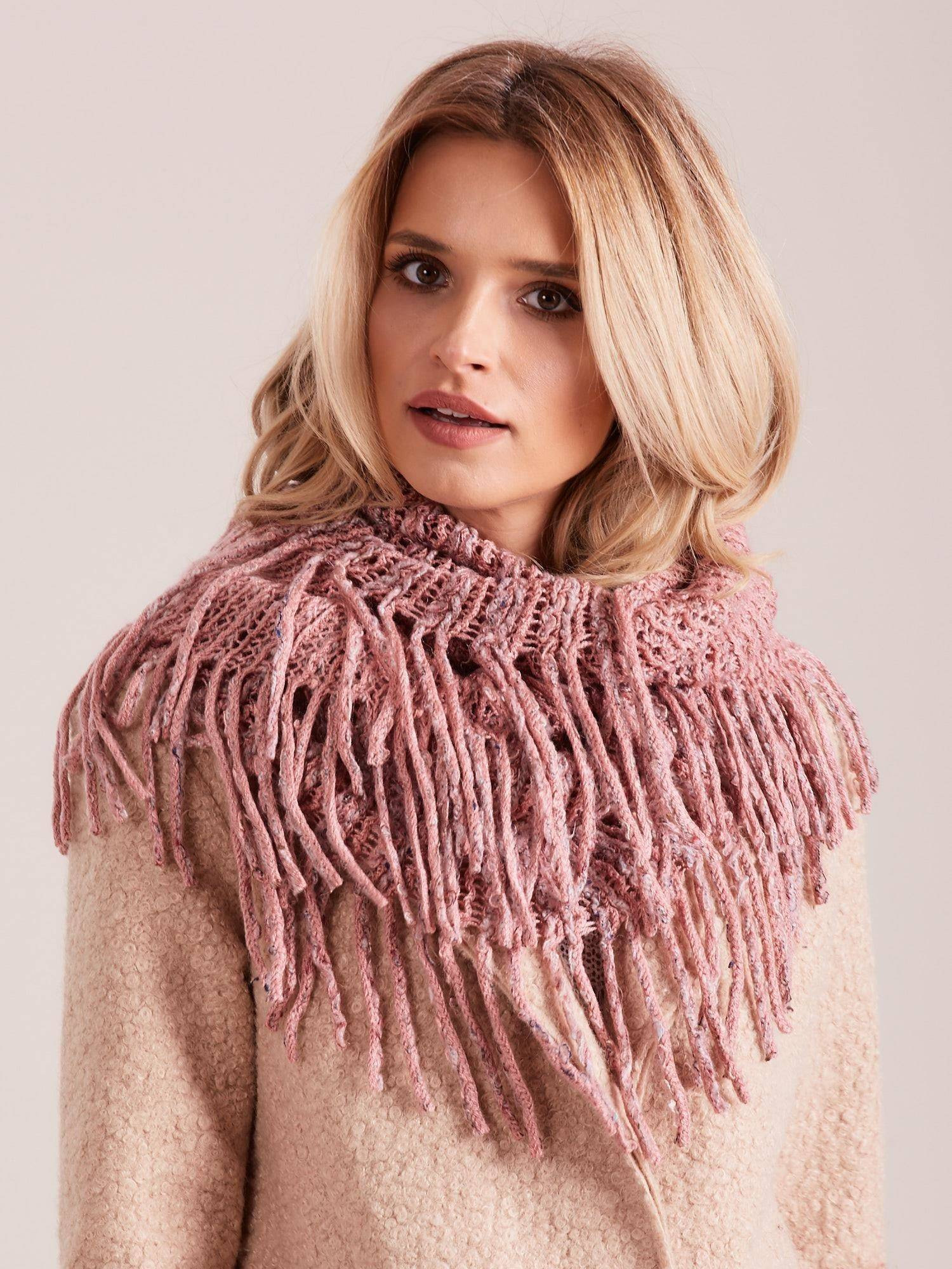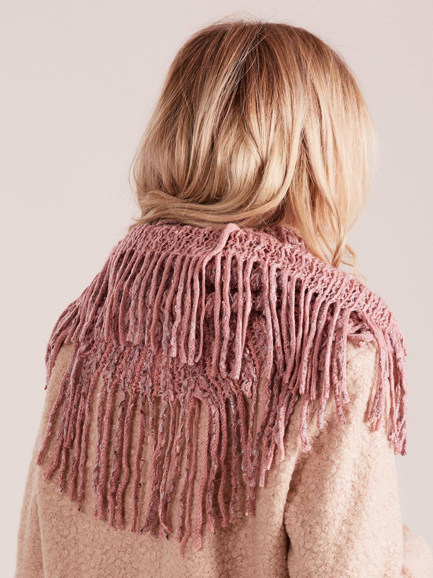 Komin ażurowy z frędzlami różowy