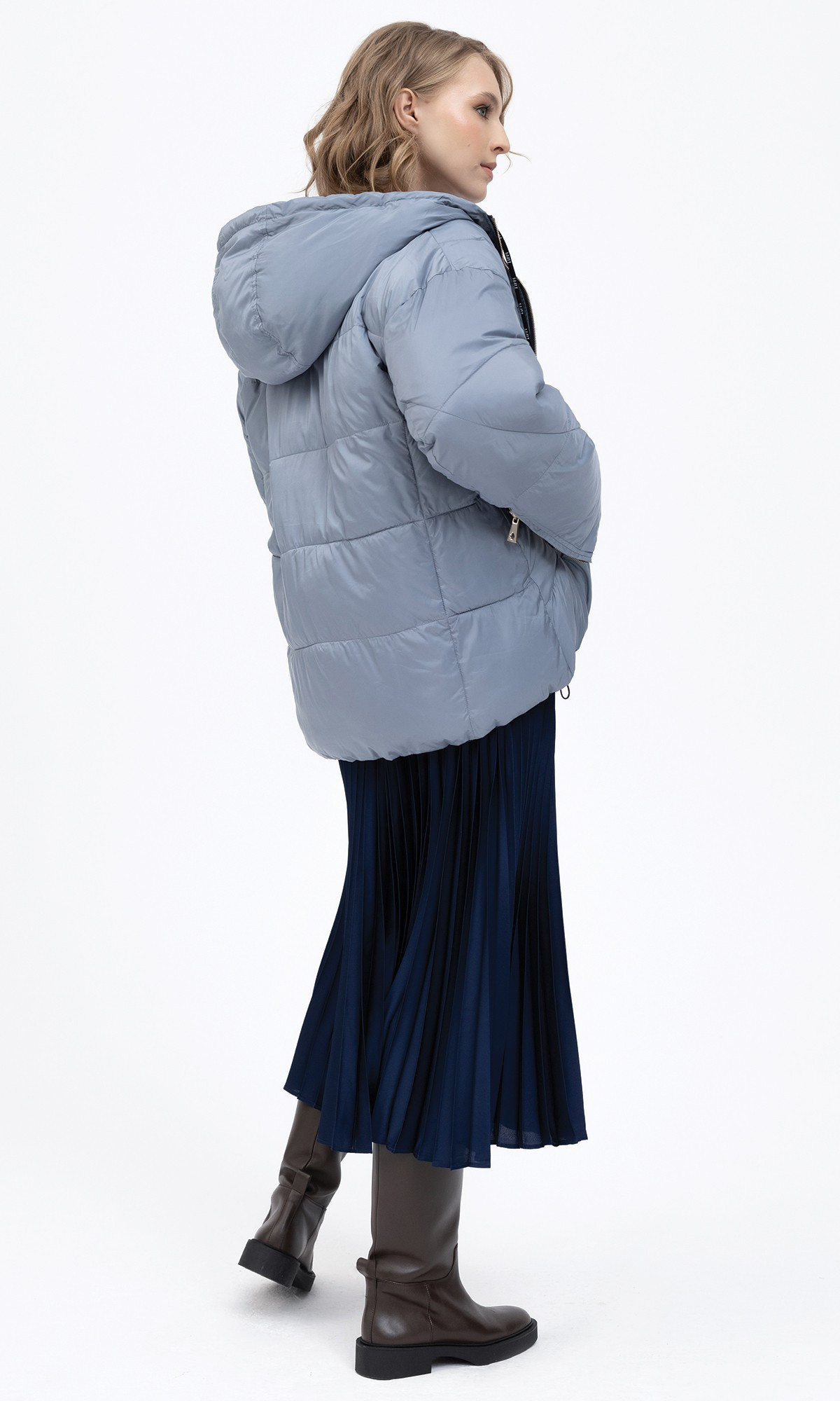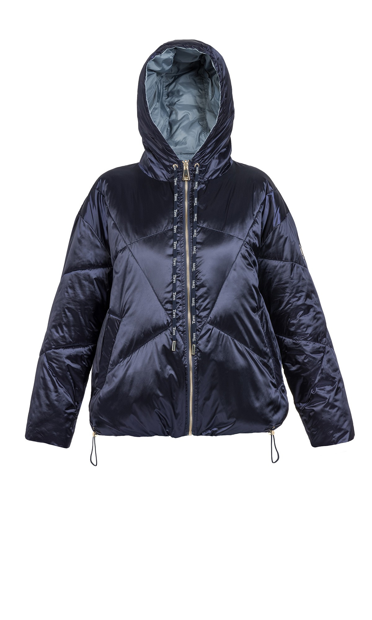 Kurtka zimowa z kolekcji Tiffi Wanaka to oversizowa, dwustronna kurtka puchowa z obszernym, ściąganym tasiemkami kapturem. Każda ze stron kurtki uszyta jest z tkaniny o kontrastowym kolorze. Przód i tył został przepikowany w odmienny sposób. Dodatkowo dolna część modelu regulowana jest przez wszyte u dołu troczki. Ciekawym elementem kurtki są umieszczone w tylnej części rękawa, efektowne zamki.