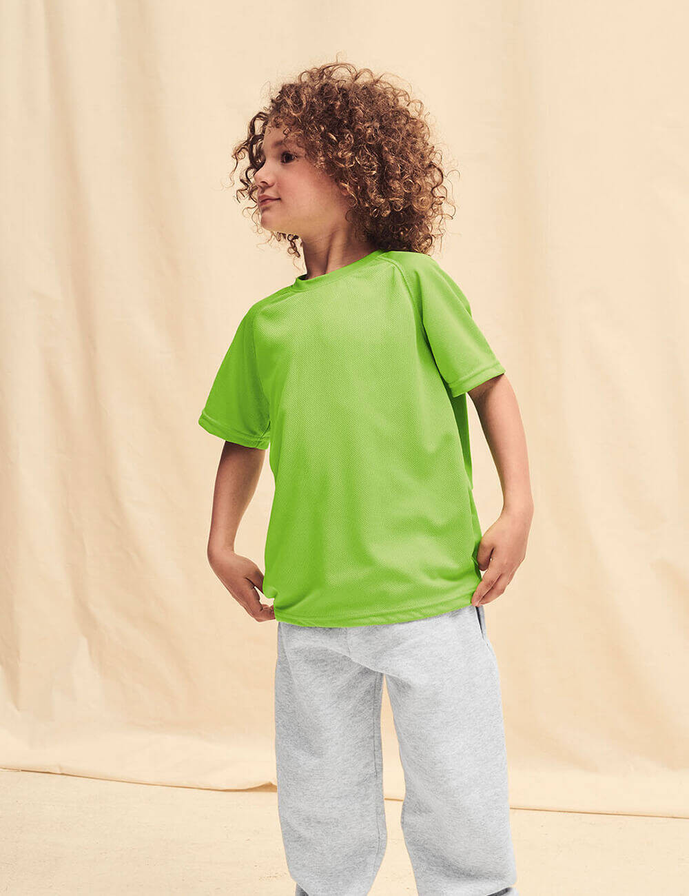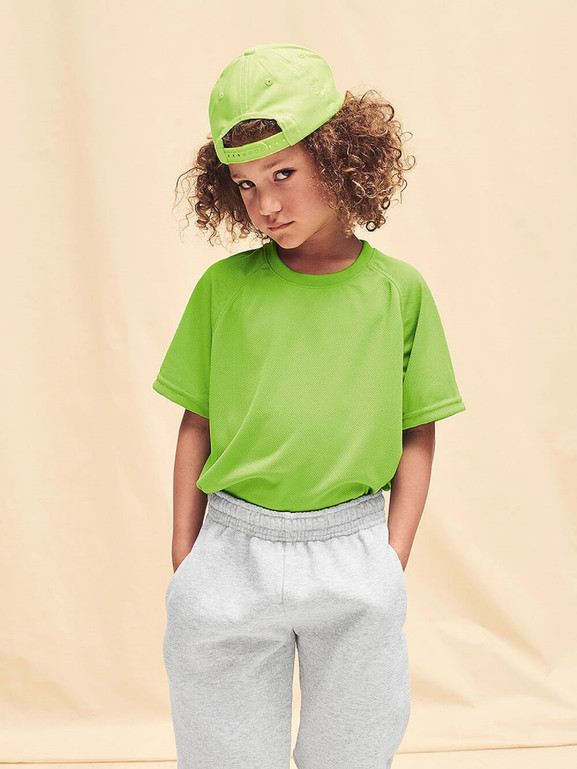 Wykonana w 100% z teksturowanego poliestru dziecięca koszulka sportowa idealna zarówno dla chłopca jak i dziewczynki.