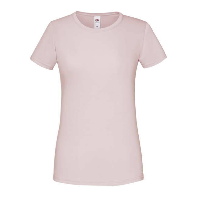 Pudrowa koszulka damska Iconic z czesanej bawełny Fruit of the Loom