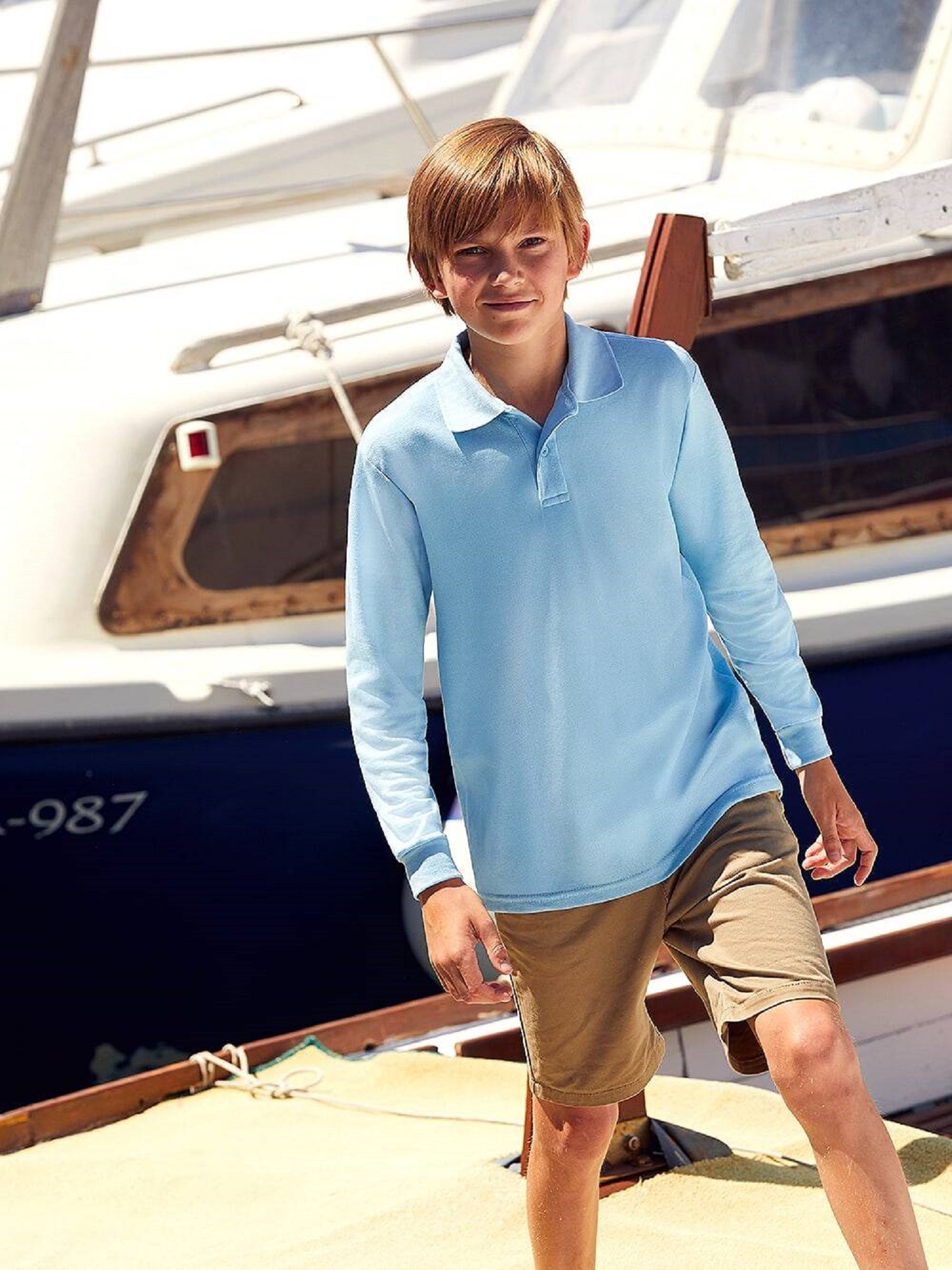Błękitna koszulka dziecięca polo z długimi rękawami Fruit of the Loom