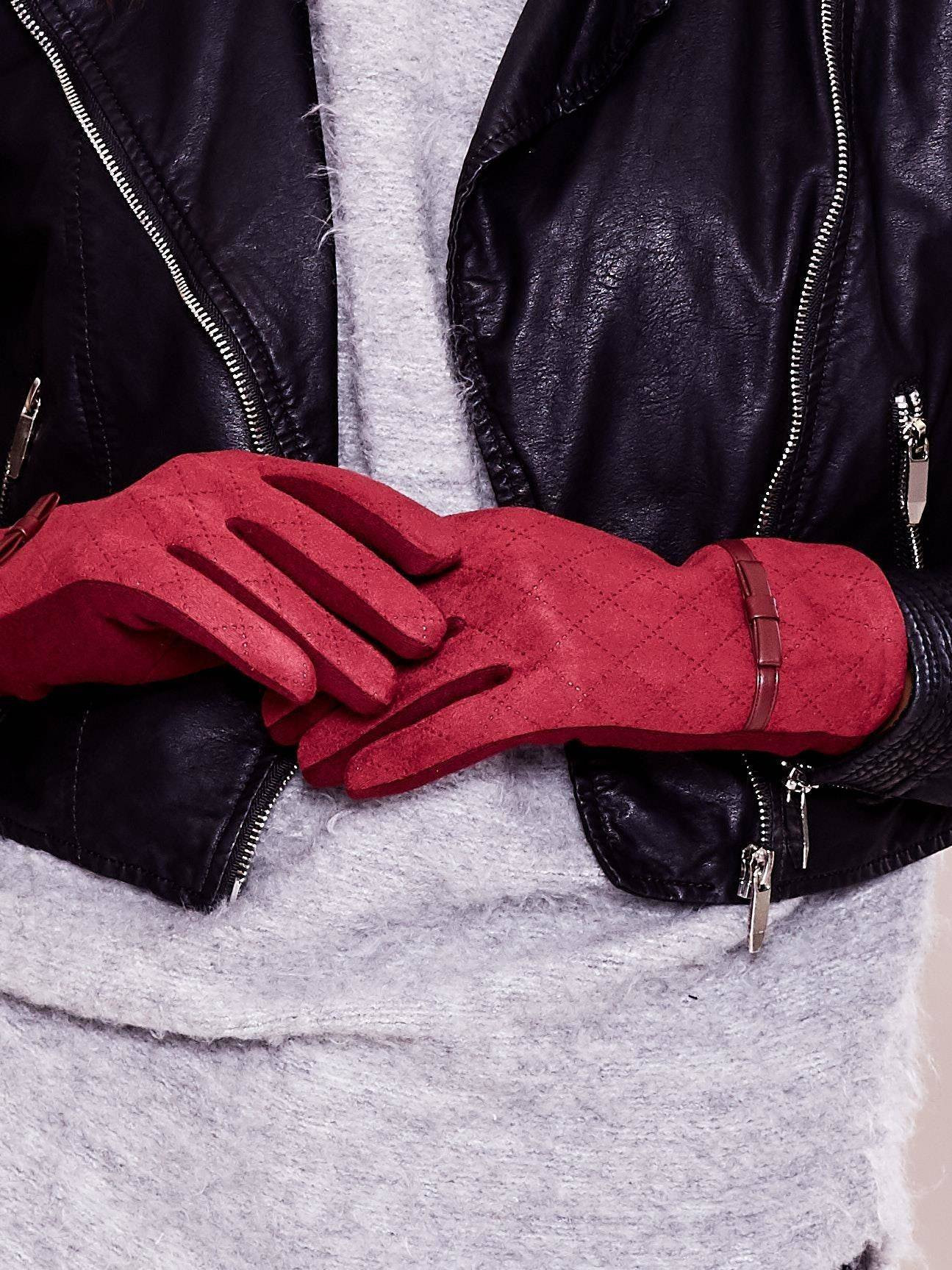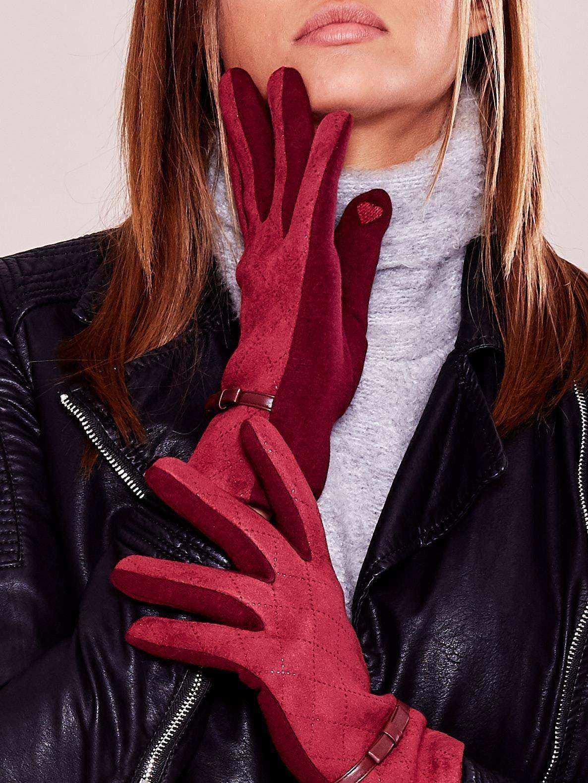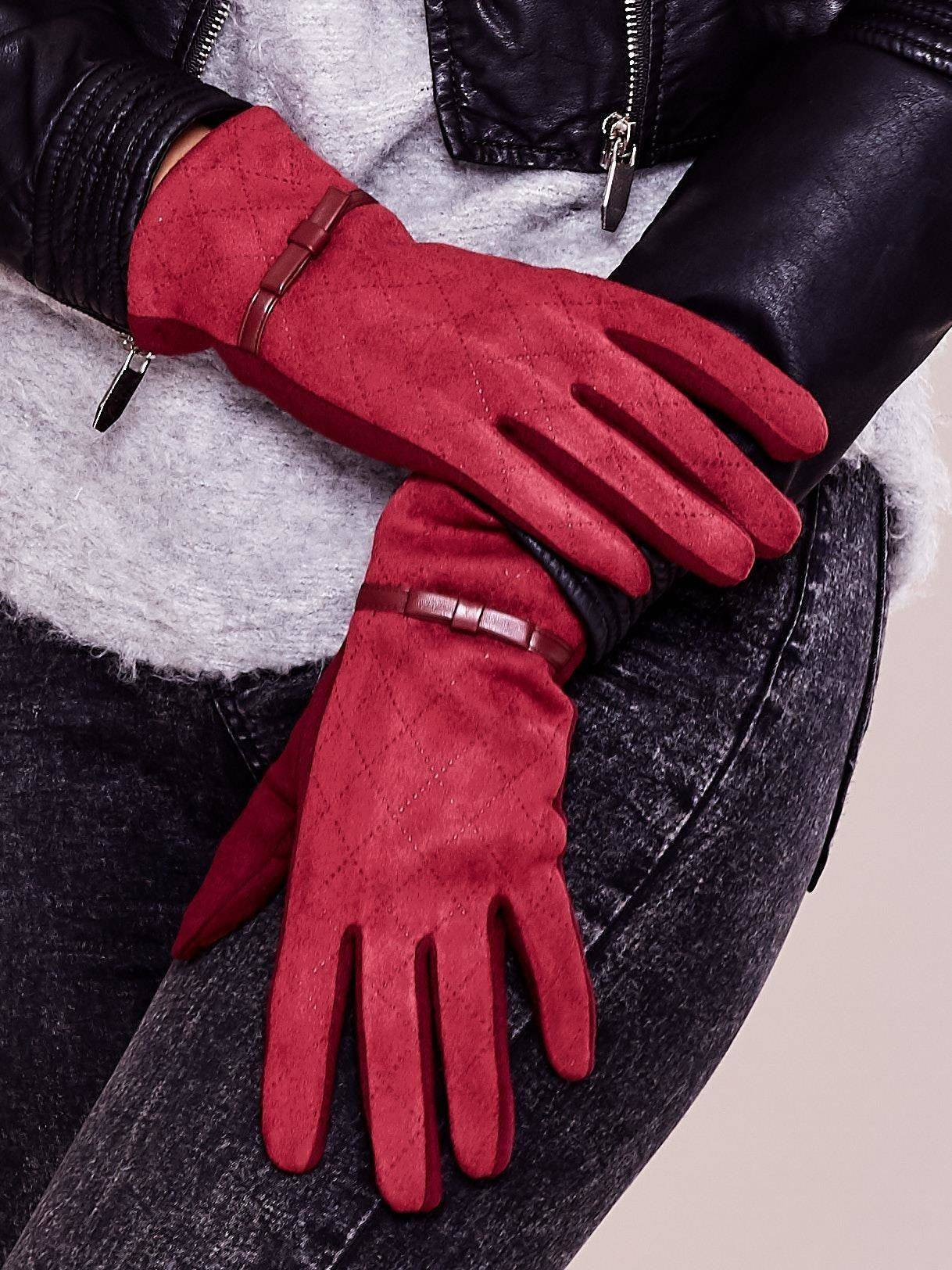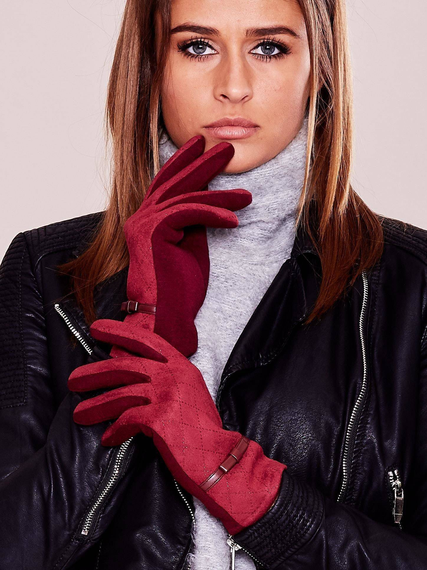 Wykonane z przyjemnej w noszeniu dzianiny dotykowe rękawiczki. Lekko ocieplane. Wierzch z dziurkowanej tkaniny imitującej zamsz.
