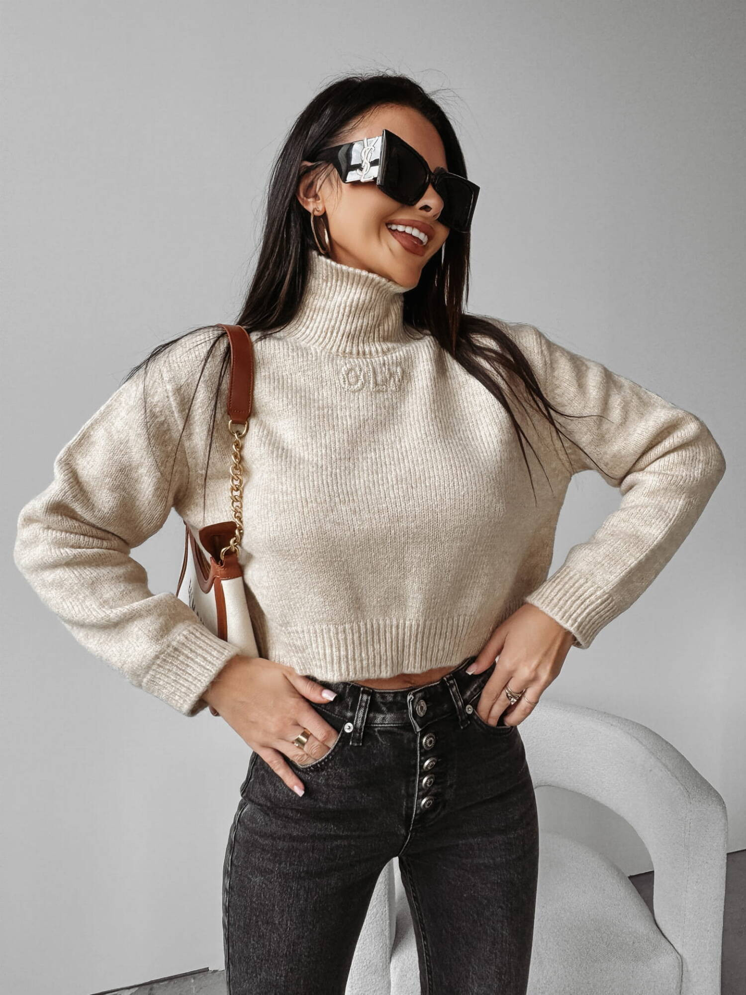 Uniwersalny i komfortowy krótki sweter, który wykonany jest z miękkiej, przyjemnej w dotyku dzianiny. Zapewni przyjemne ciepło w chłodniejsze dni, a przy tym wygląda supermodnie i kobieco.