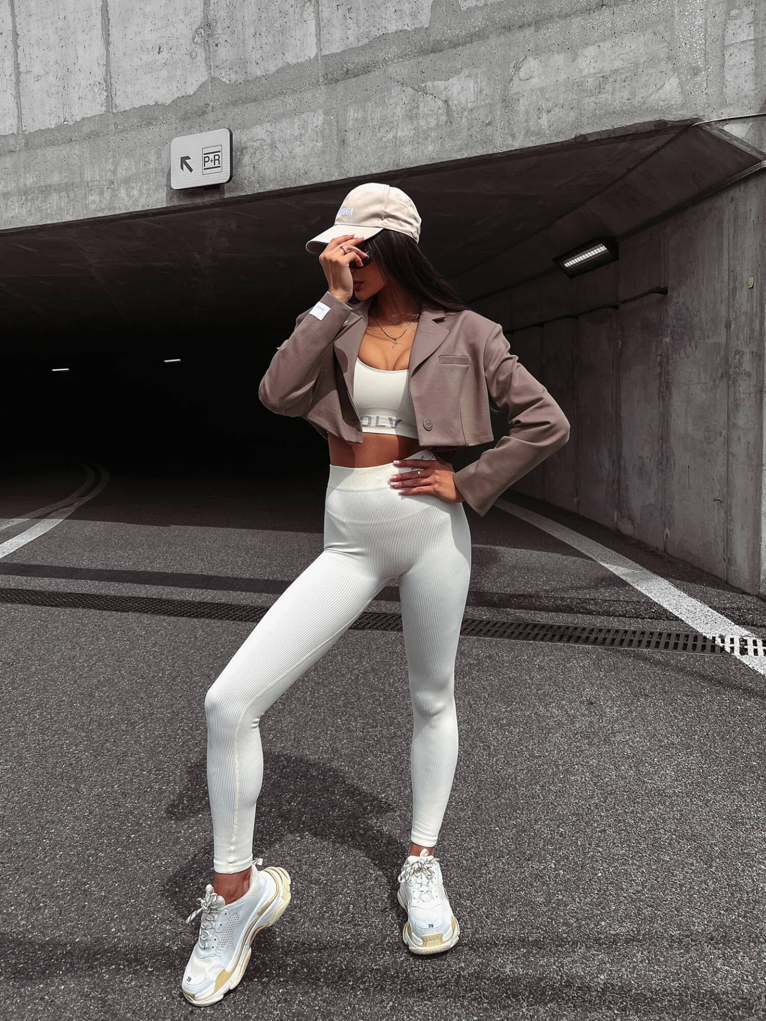 - Dopasowane, prążkowane leginsy znakomicie wysmuklą sylwetkę i podkreślą jej atuty
