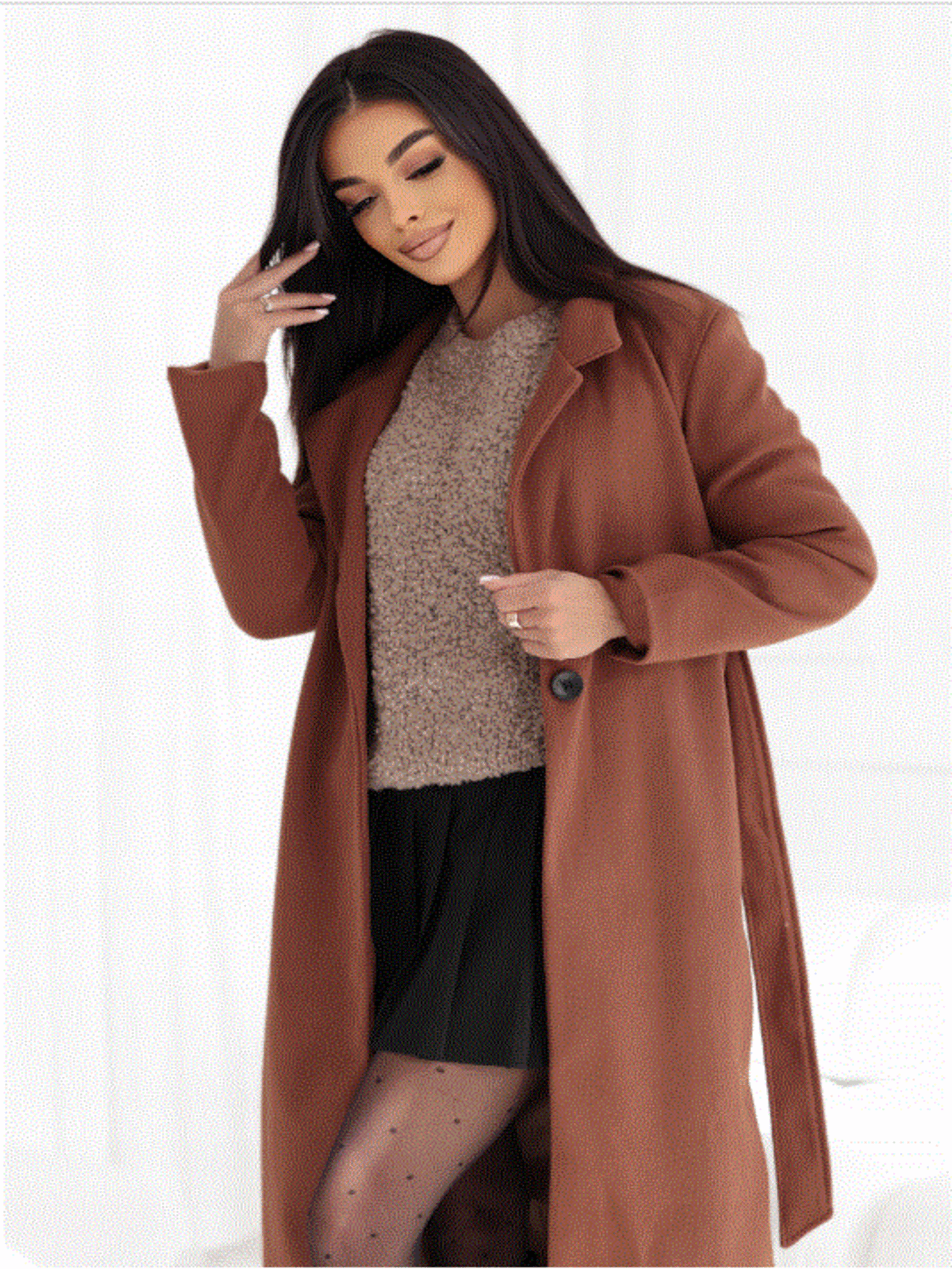 • Elegancki taliowany płaszcz doskonały na wiele okazji