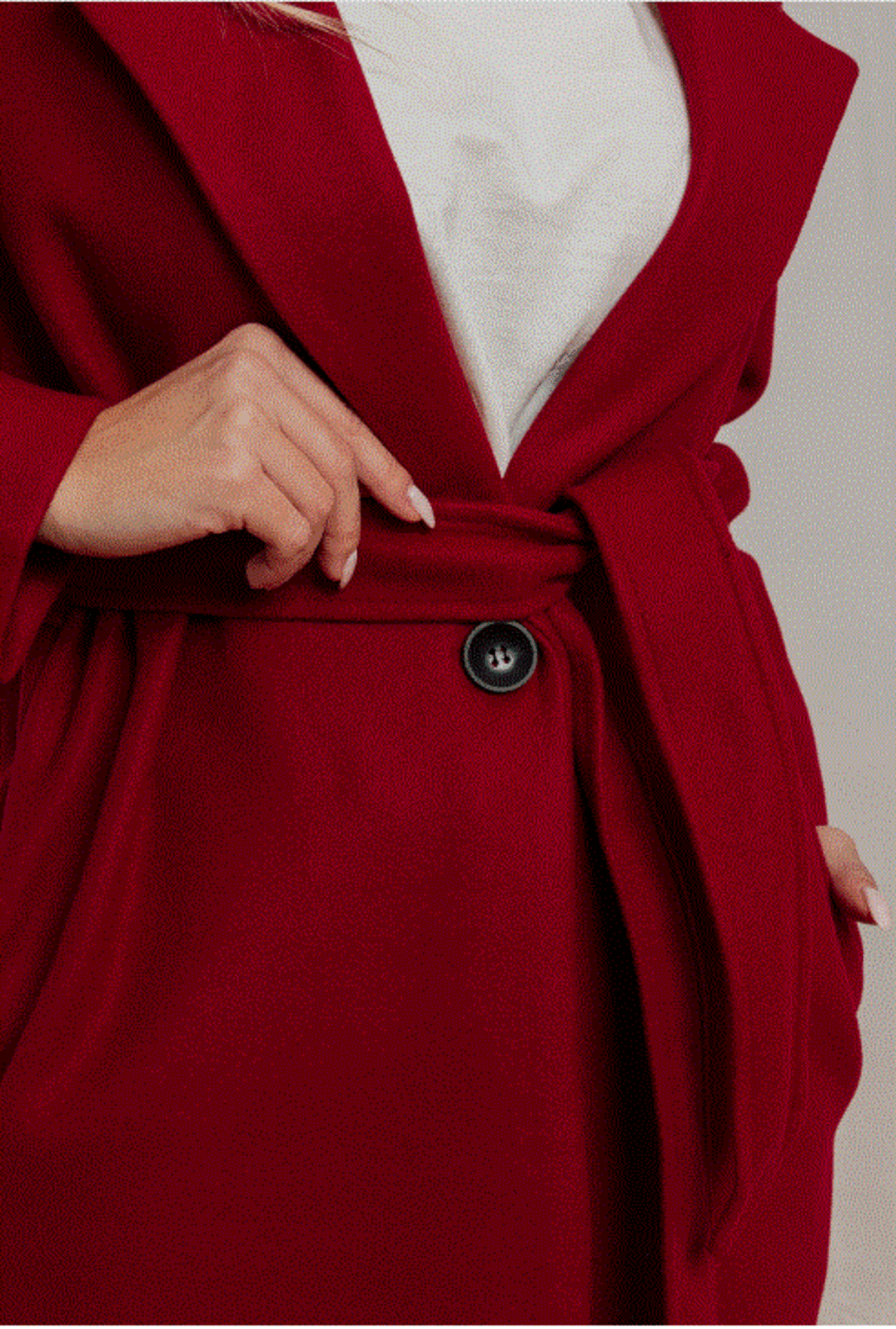 Bordowy klasyczny długi płaszcz wiązany Och Bella