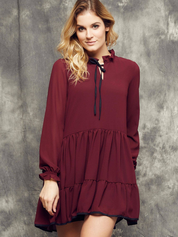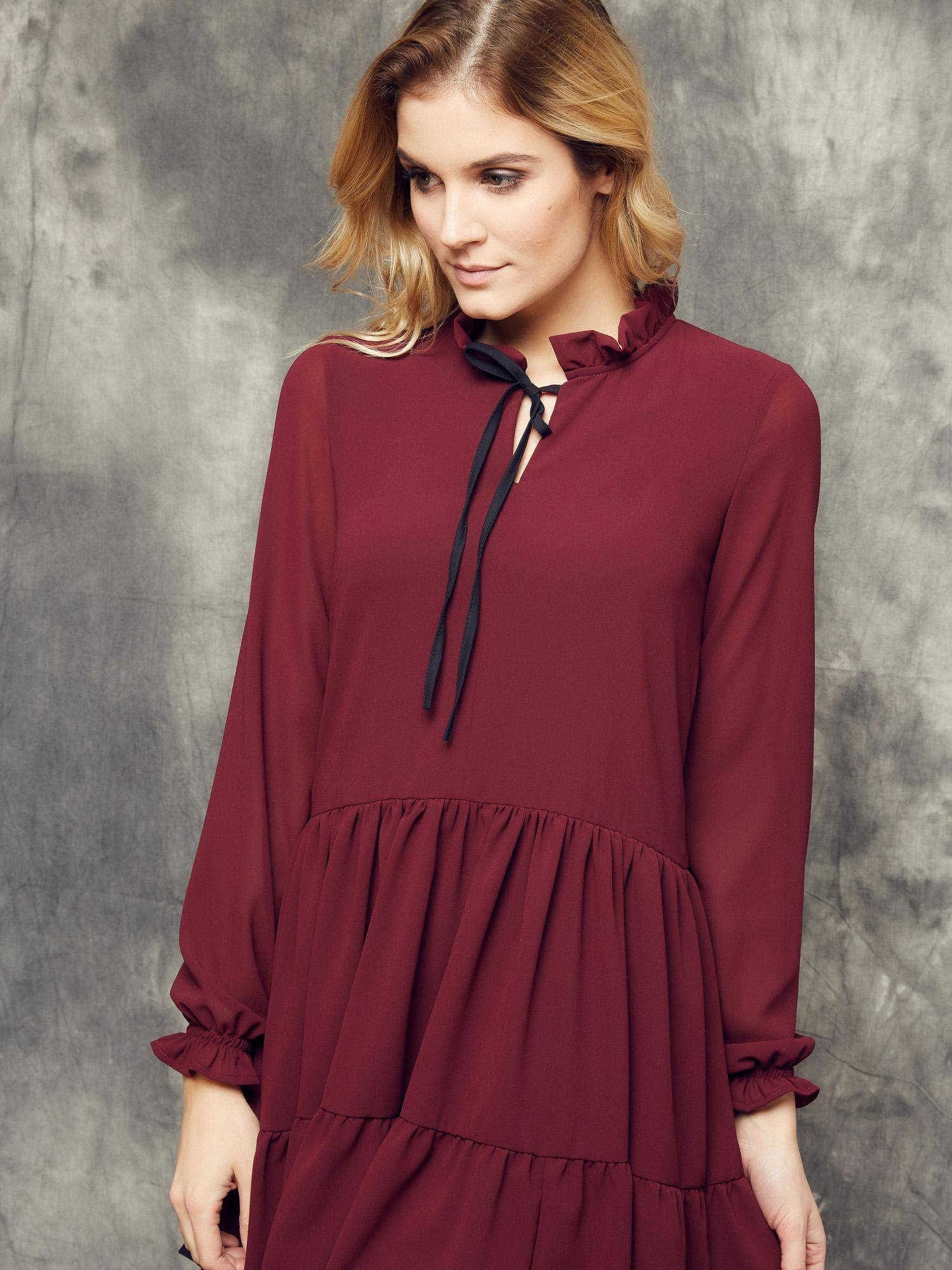 Sukienka Cocomore Boutiqe ze stójką i marszczeniami bordowa