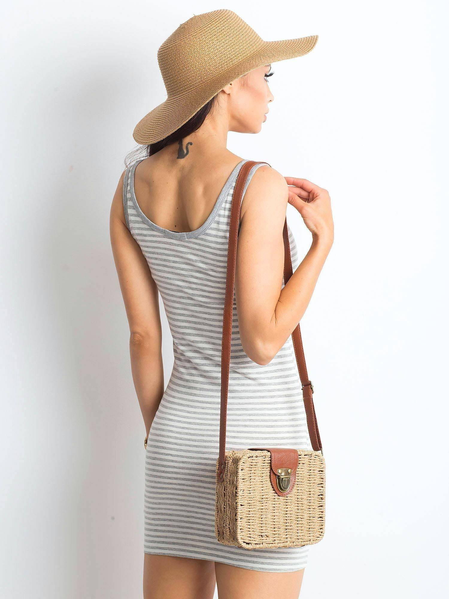 Wykonana z cienkiej, bawełnianej dzianiny tunika w cienkie biało-szare poziome paseczki. Model z kolekcji Yups na ramiączkach z głębokim, okrągłym dekoltem zdobionym szarą lamówką. Wykonana z elastycznego materiału, pięknie podkreśla sylwetkę. Komfortowa długość do połowy uda. Materiał jest lekko elastyczny, ładnie dopasowuje się do sylwetki.