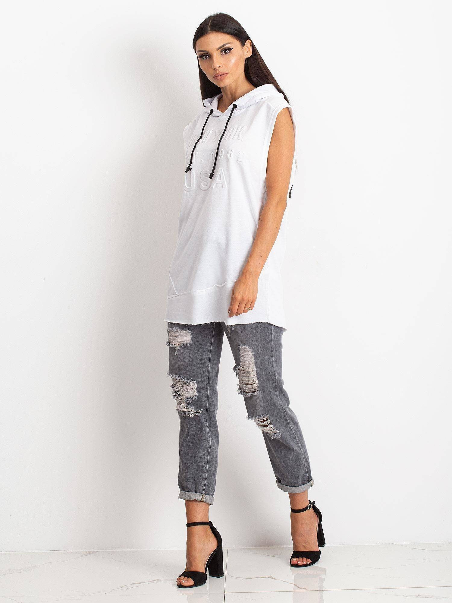 Bluza bez rękawów z napisami biała