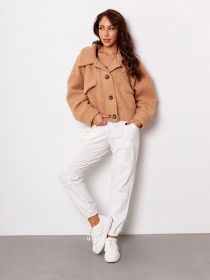 Beżowa kurtka z flauszu zapięcie na guziki LeMonada