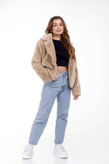 Beżowe krótkie futerko z wiskozy